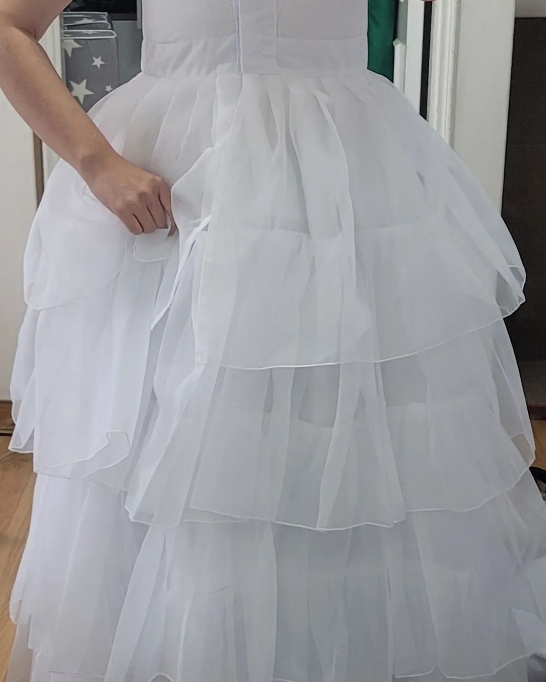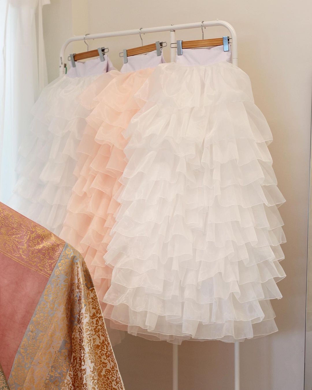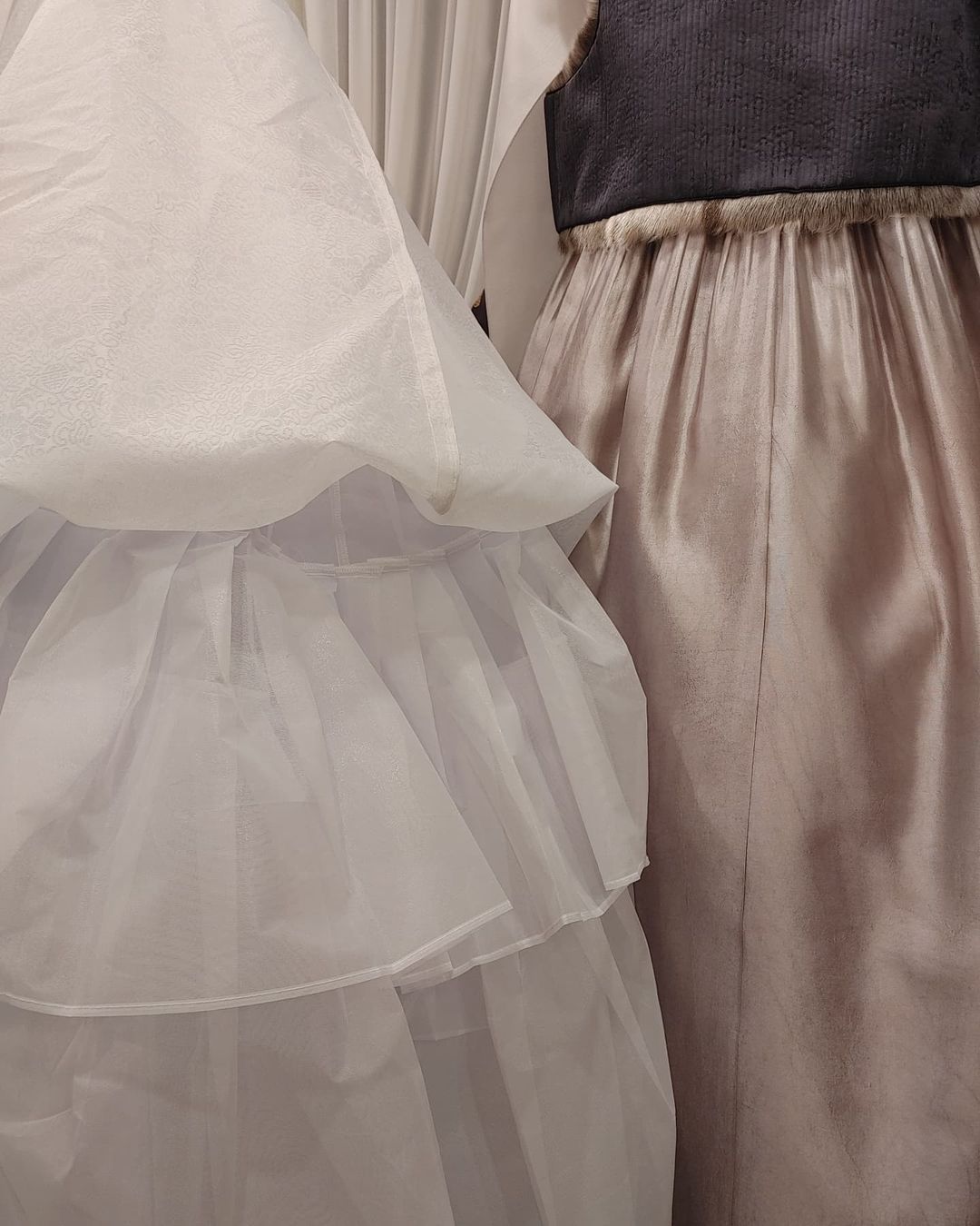 풍성하지만 실루엣의 품격에는 과하지 않은 속치마 안감 샤의 강도와 겨울철 난방시설 혼례장 건조한 실내에서