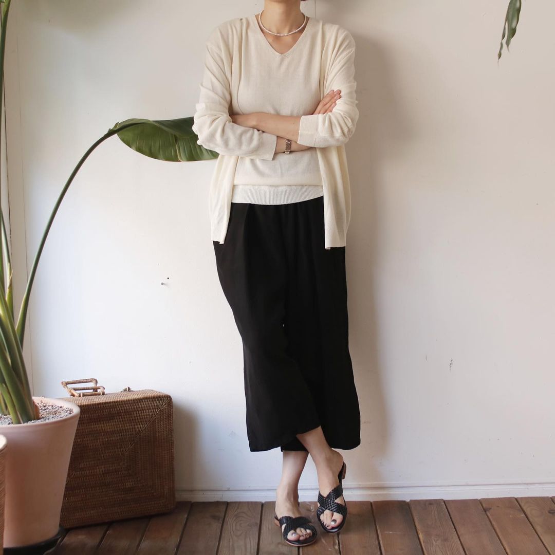 본빠옹 가죽꼬임슬리퍼 루즈핏가디건 브이니트나시 풍기인견와이드팬츠