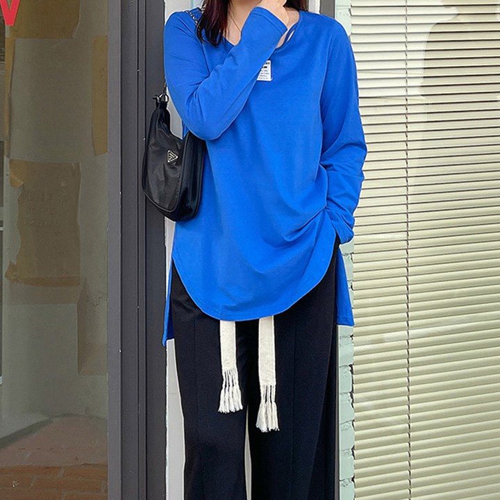 라운드 무지 롱슬리브 긴팔 레이어드 티셔츠