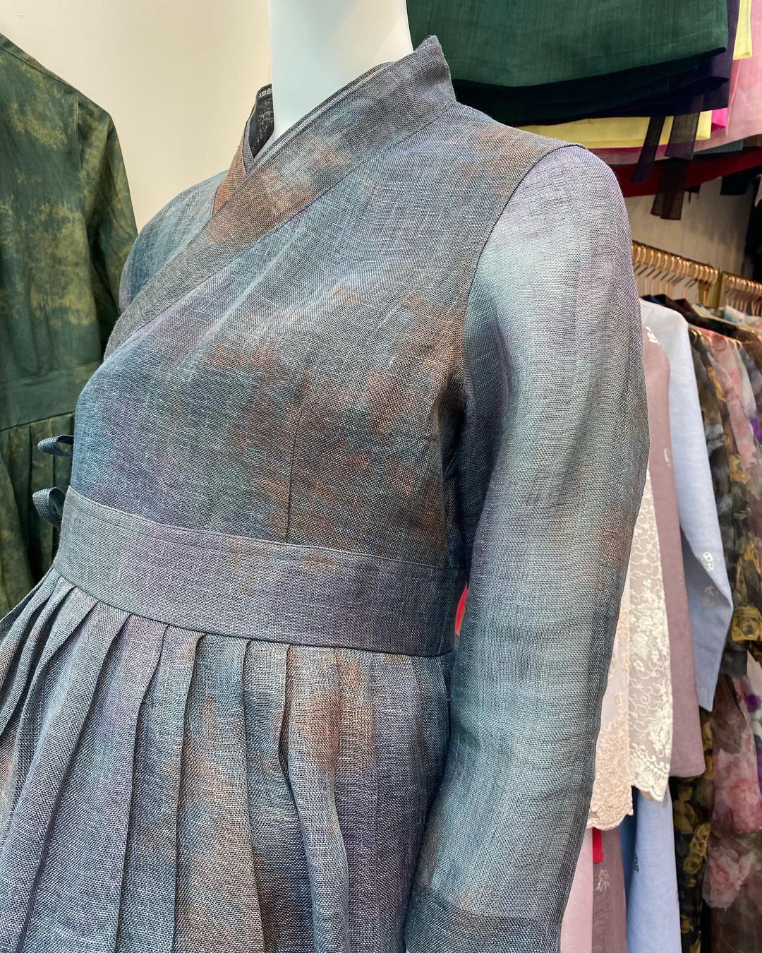 이번 주말에 천연 삼베가 인사동에 입고될 예정입니다. 요즘 바빠서 모델컷 촬영도 못하고 있는데. 샘플을 마네킹에 걸면 정말 바로 팔리는 삼베 철릭 원피스.