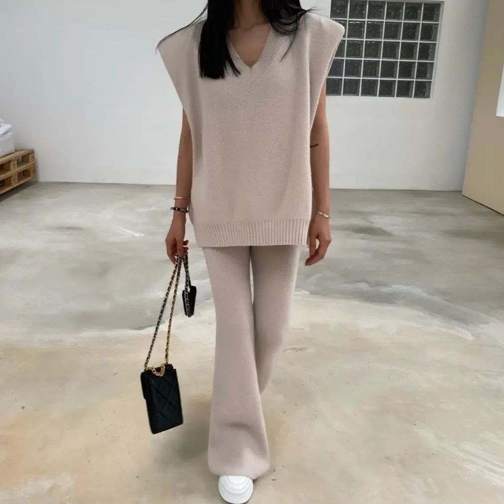 ✔️단가라 민소매 바지 니트 세트