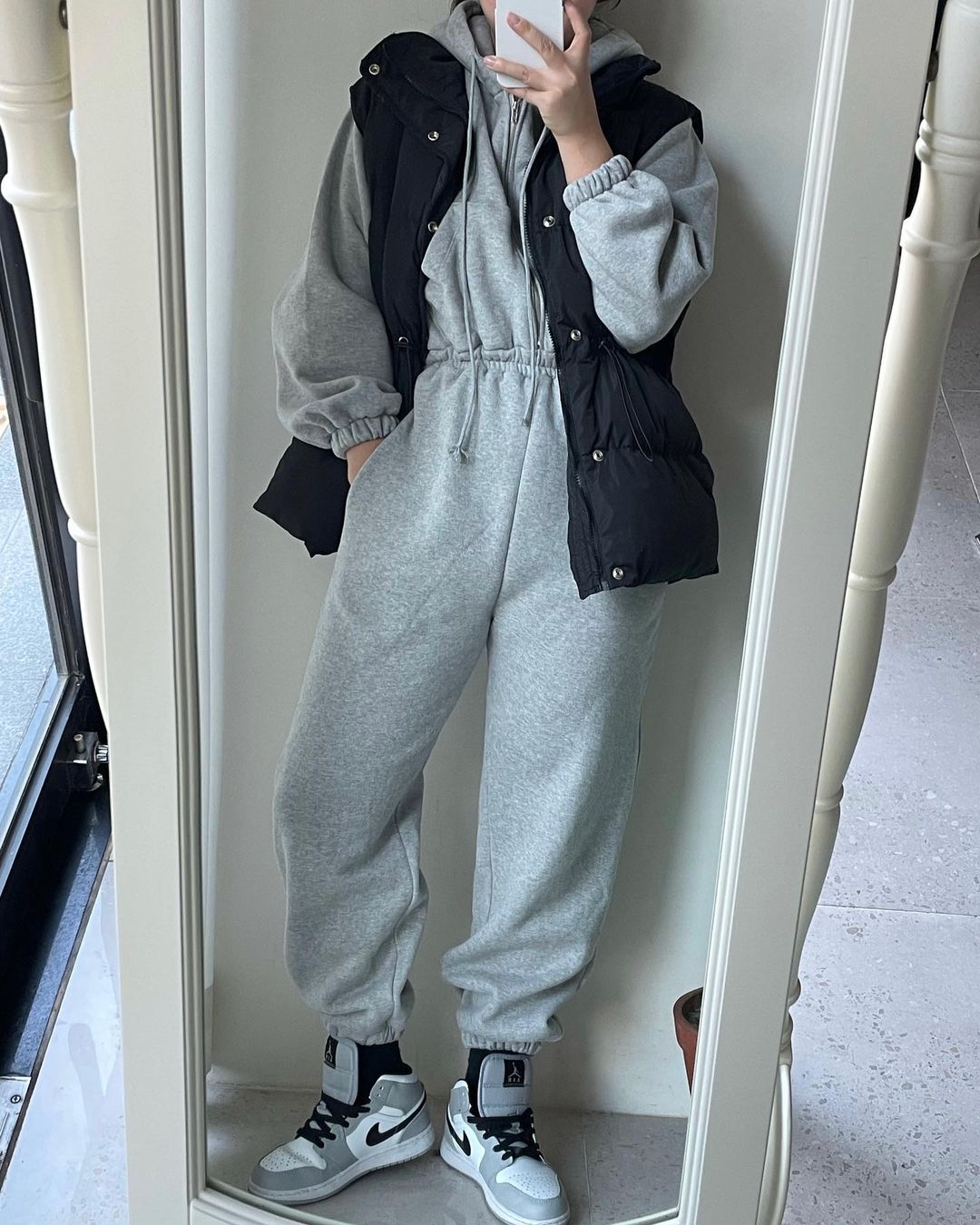 후드점프수트코튼쭈리점프수트 + 웰론패딩조끼