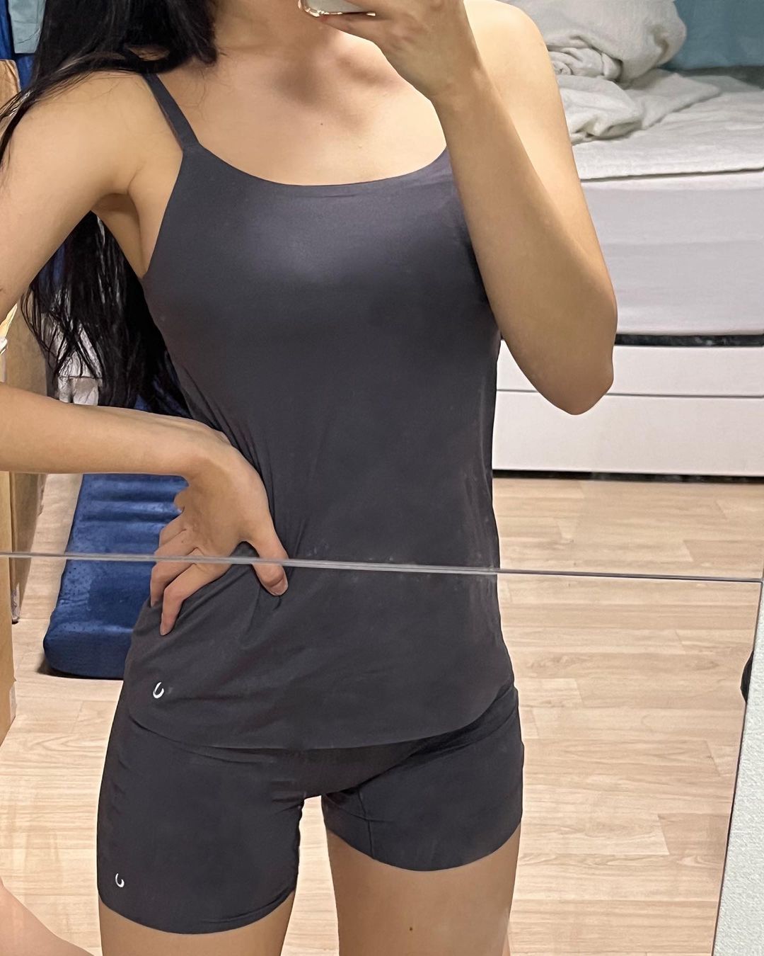 넥라인에 안감과 겉감 옆선이 분리되어 가슴을 편안하게 잡아줘서 안입은듯한 느낌이 들정도로 편해요!!