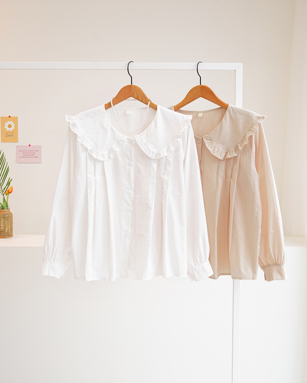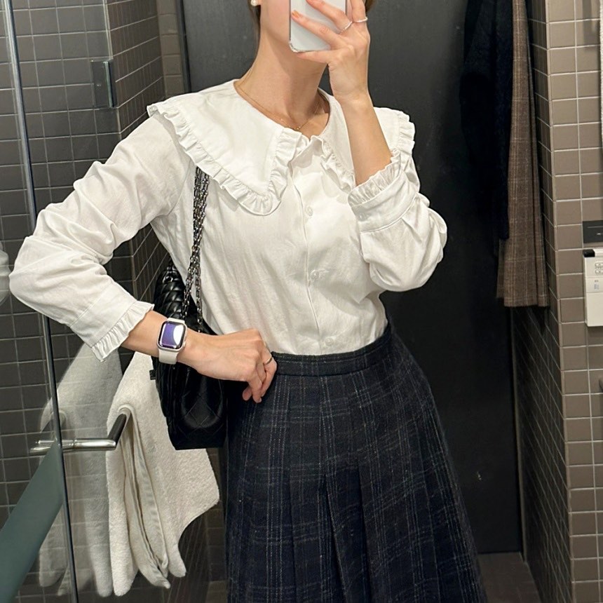 라이브특가 투게더 핀턱 빅카라 프릴 블라우스23,500
