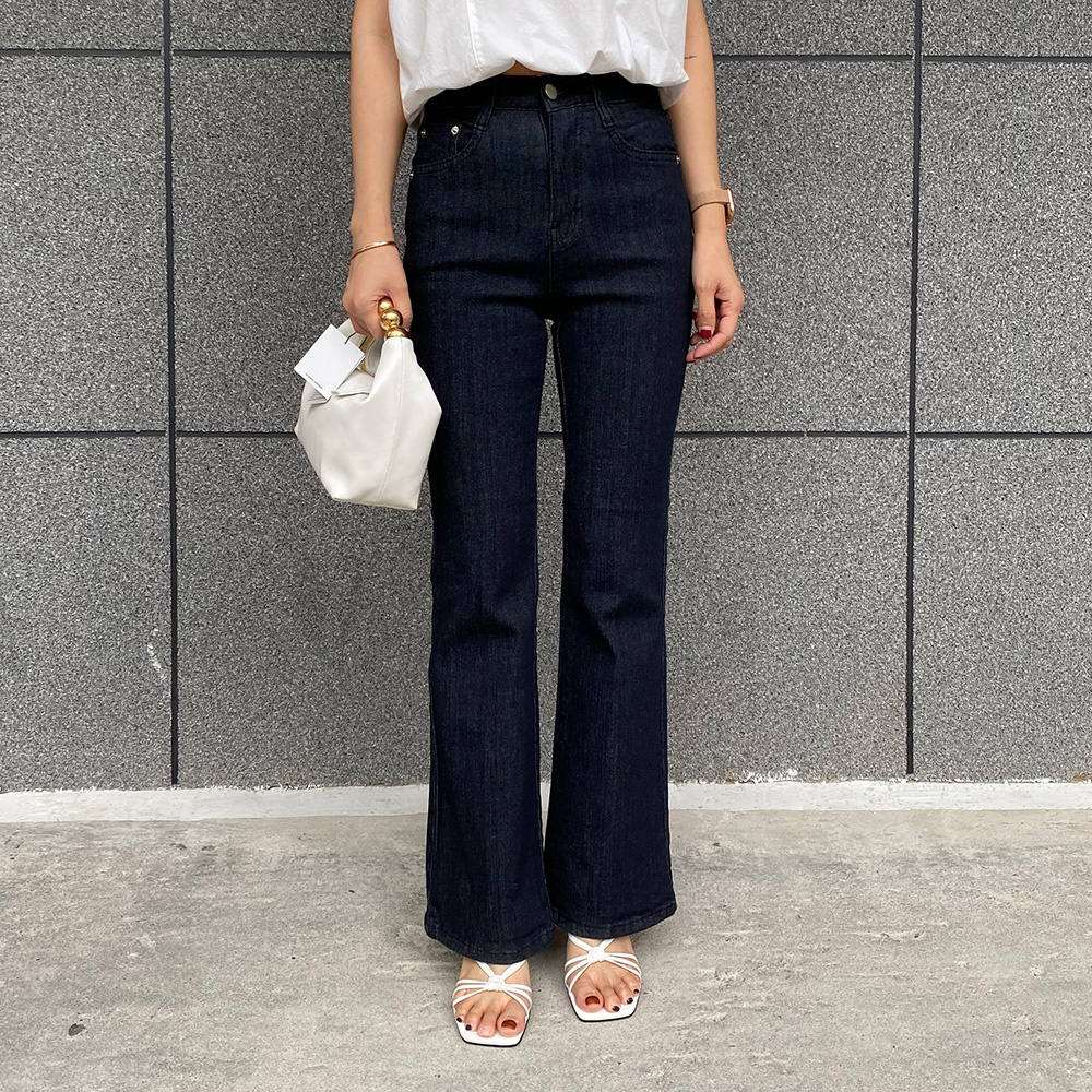 투 버튼 슬림 부츠컷 흑청바지