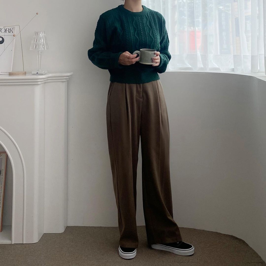 사이즈 : S, M, L겨울에 입기 좋은 두께의 슬랙스와 포근한 니트조합🤍