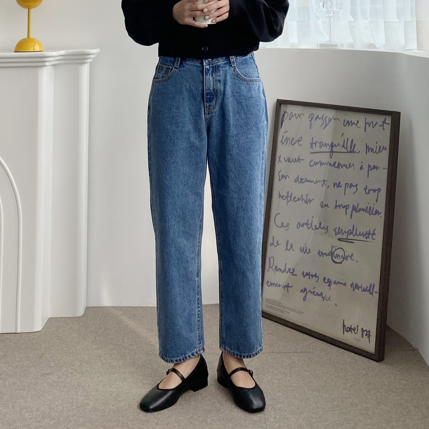 스판기가 쫀쫀하게 있어 날씬하게 다리 라인을 잡아주고 착용감이 정말루 편안했답니당!! 흑청바지 찾으셨던 분들에게 추천드립니다!🤩