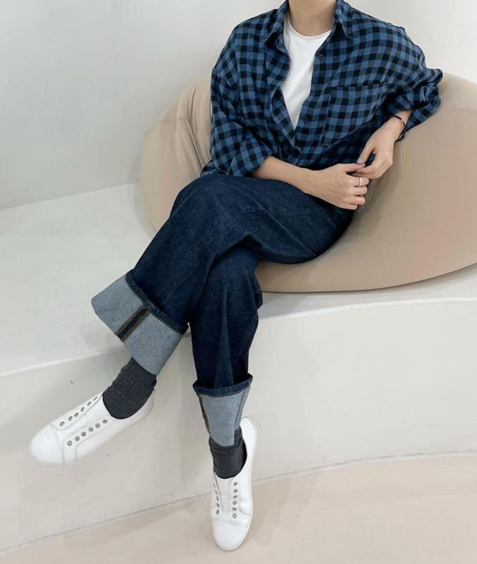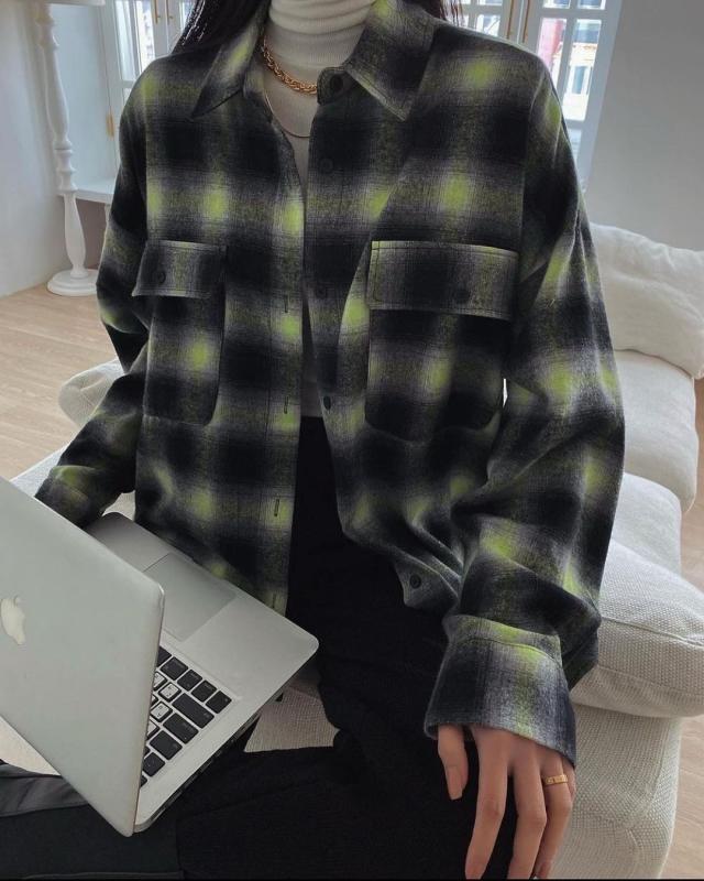 블루샴페인 미시룩 캐주얼룩 체크남방 체크셔츠 기모셔츠 고방체크 깅엄체크 깅엄체크셔츠