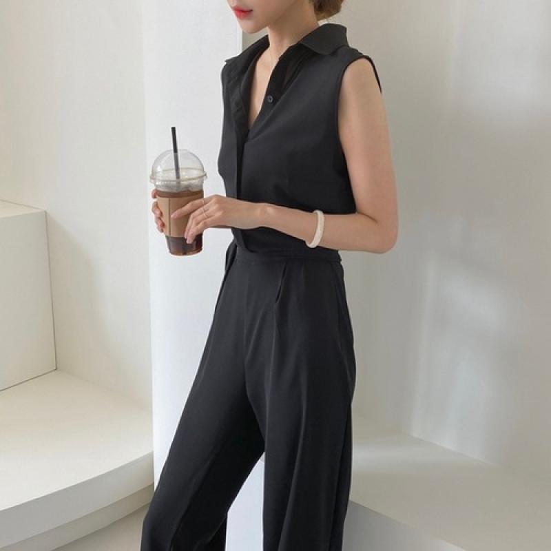 여성 여름 쿨 카라 민소매 점프수트33,200