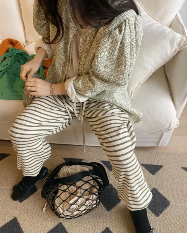 와플조직에 귀여운 단가라패턴의 조거패츠예요