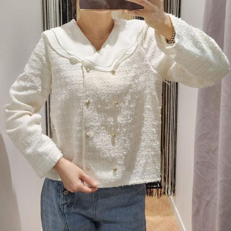 부쩍 따뜻해진 날씨에 옷차림도 가벼워진 요즘같은 때에 딱인 프릴 트위드 자켓✨✨