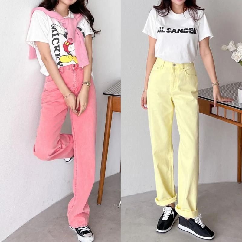🫠색감이 너무해 핑크바지 노랑바지 찢청 구제청바지 카고스커트 카고데님 건빵치마 버뮤다팬츠 핀턱청바지 청반바지 흑청부츠컷 부츠컷 봄코디 봄코디추천 크림블랙