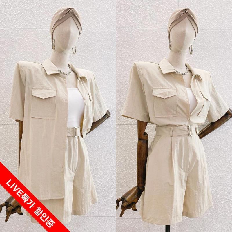 스카 오버핏 포켓 셔츠 반바지 세트 C32,990