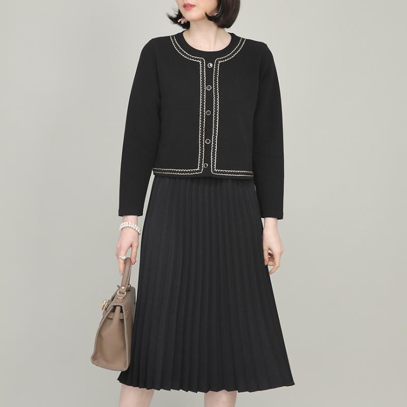 코코 트위드 테잎 플리츠 치마 여성 봄 가을 긴팔 가디건 일체형 원피스 K02309