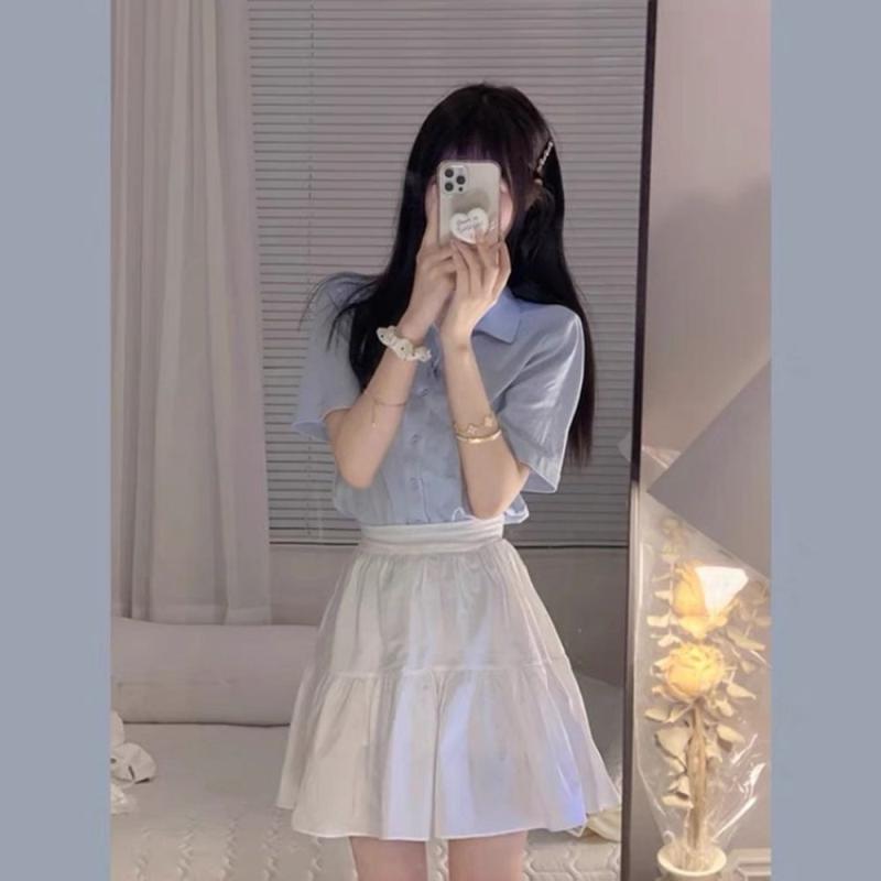 뒷밴딩 핀턱 치마반바지 투피스 셋업