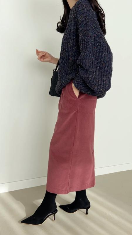 세로로 촘촘하게 짜여진 니팅 짜임과