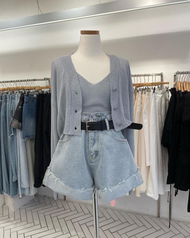 슬림 패드 가디건 + 나시 + 반바지