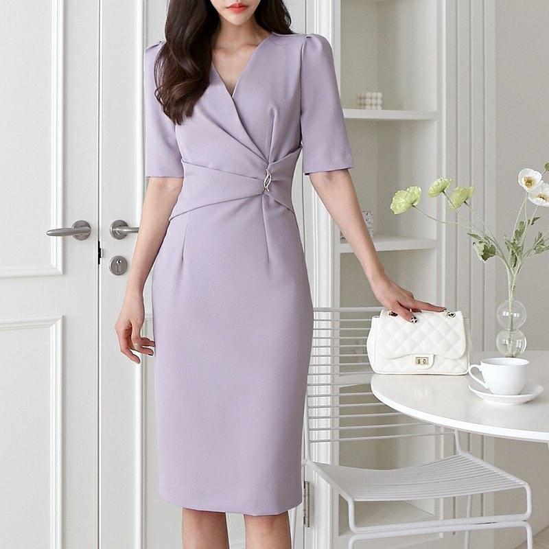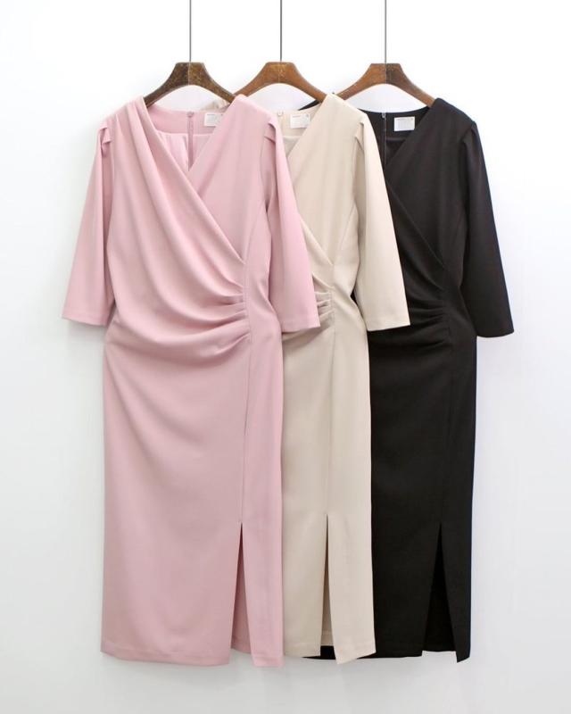 단정하며 고급스러운 분위기의 드레이프 원피스