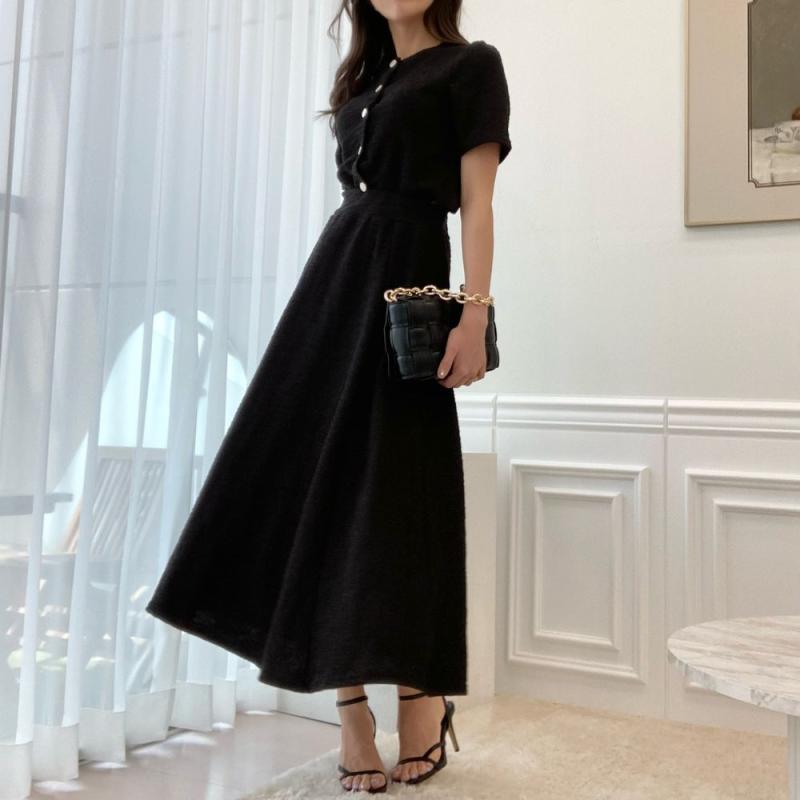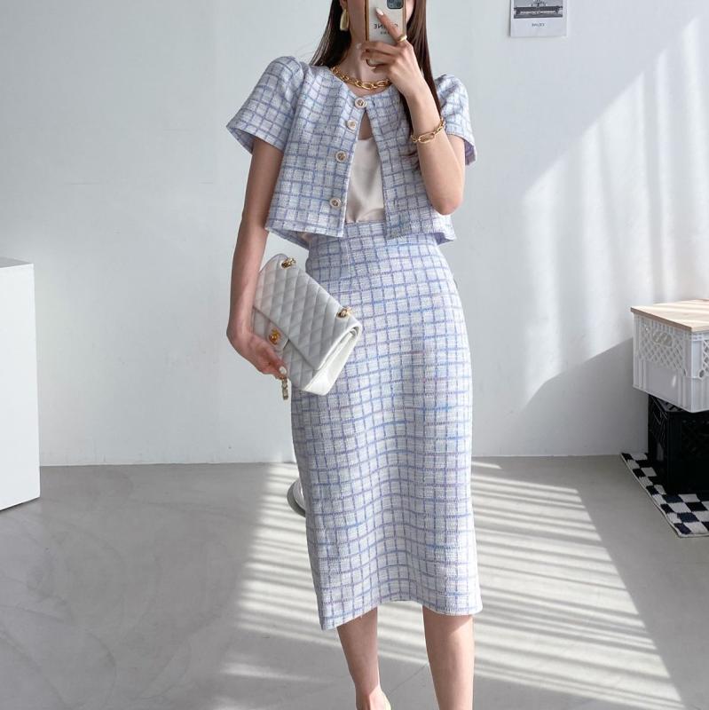 여름까지 쭉 입기 🖤🖇 컬러 배색체크 트위드 반팔스커트 Set 3color
