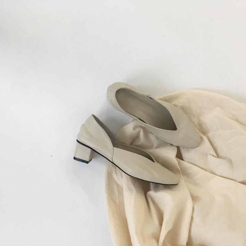 ❤️성수동수제화 양가죽 스웨이드 브이 사이드 오픈컷 미들힐펌프스 5cm❤️