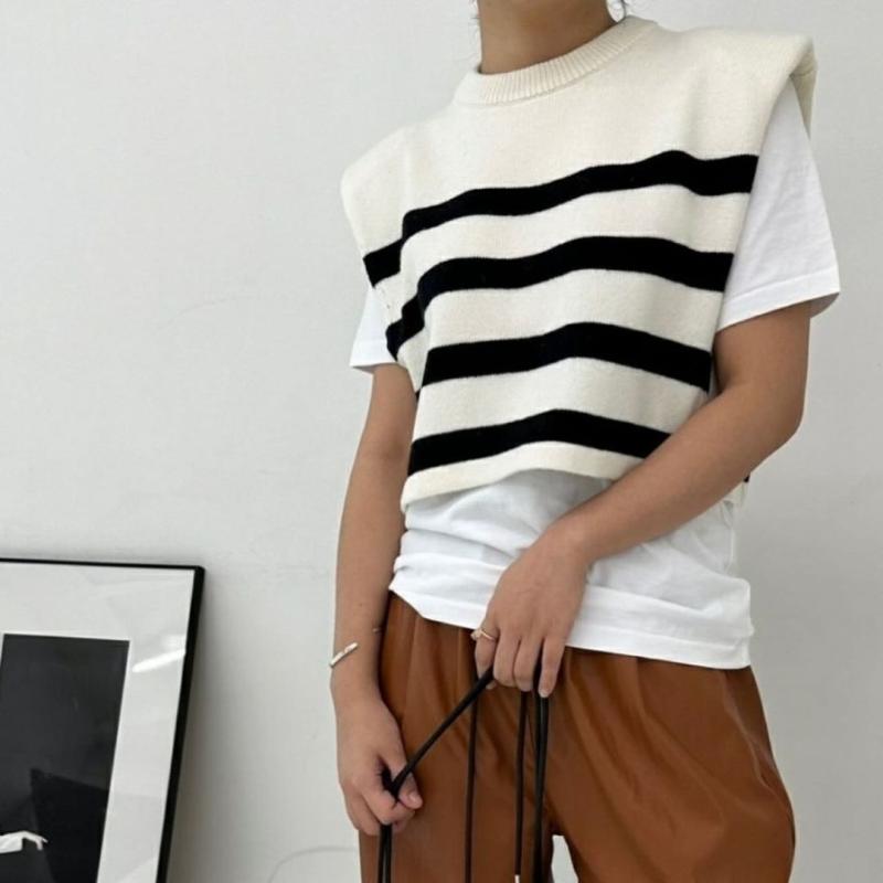 옆무늬 날씬 웨이브 레이어드 조끼 니트18,900