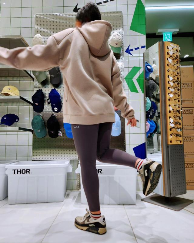 ✔️ 레깅스는 뒤쪽 허리와 허벅지에 포인트를 준 디자인으로 너무 화려하지 않으면서도 심심하지 않아 평상시에 입고다니기에도 부담스럽지 않음!! 집에서 홈트할 때는 물론, 산책하거나