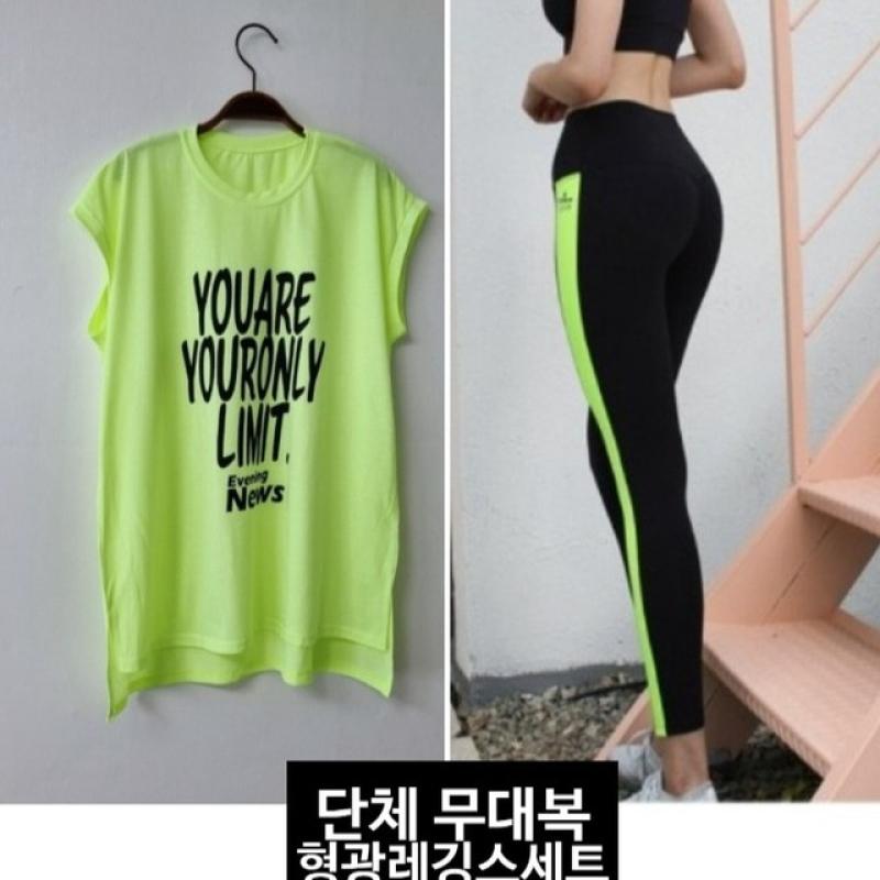 형광나시+세루아형광라인레깅스(요가 필라테스 줌바 라인 댄스복)단체무대공연줌바댄스복