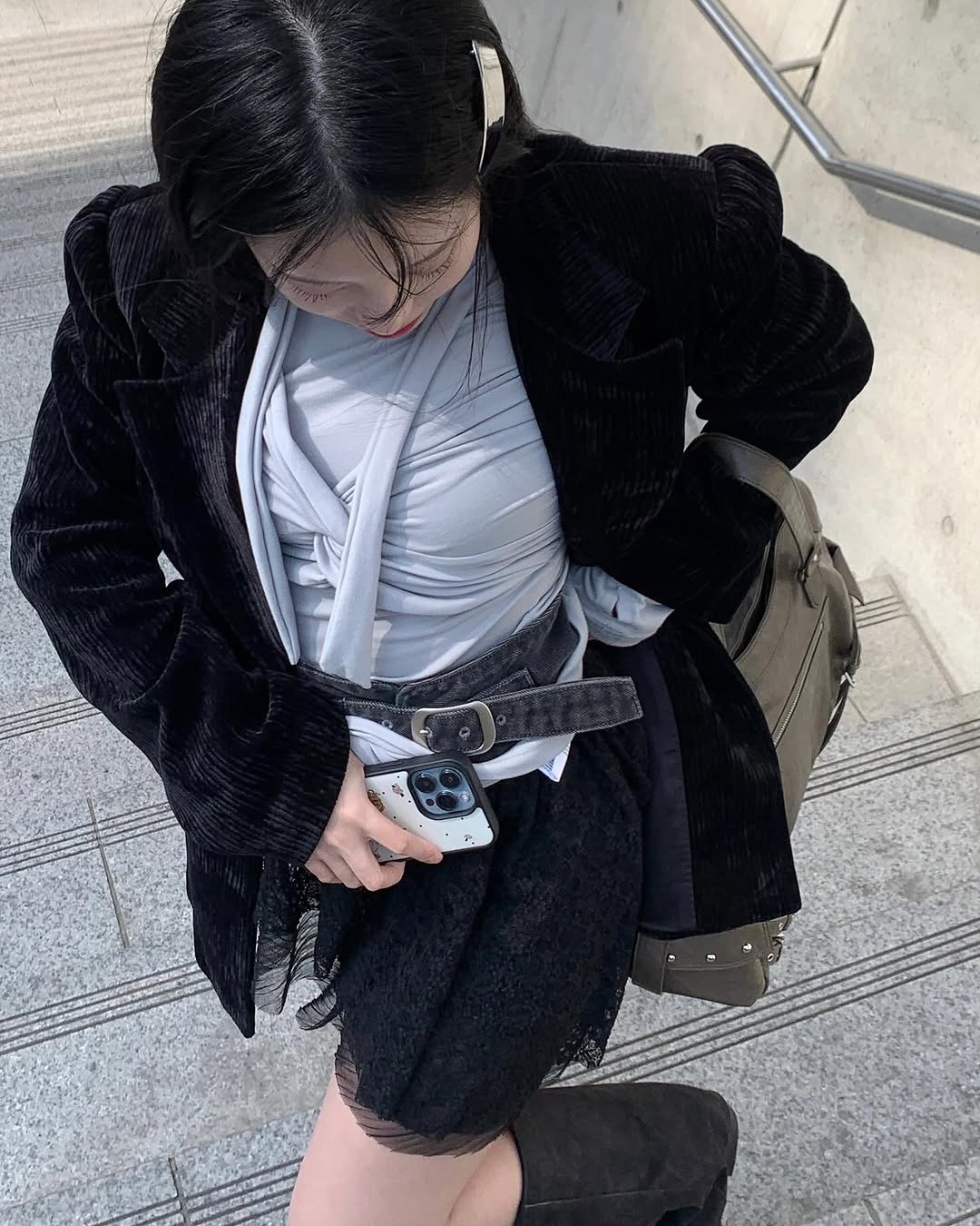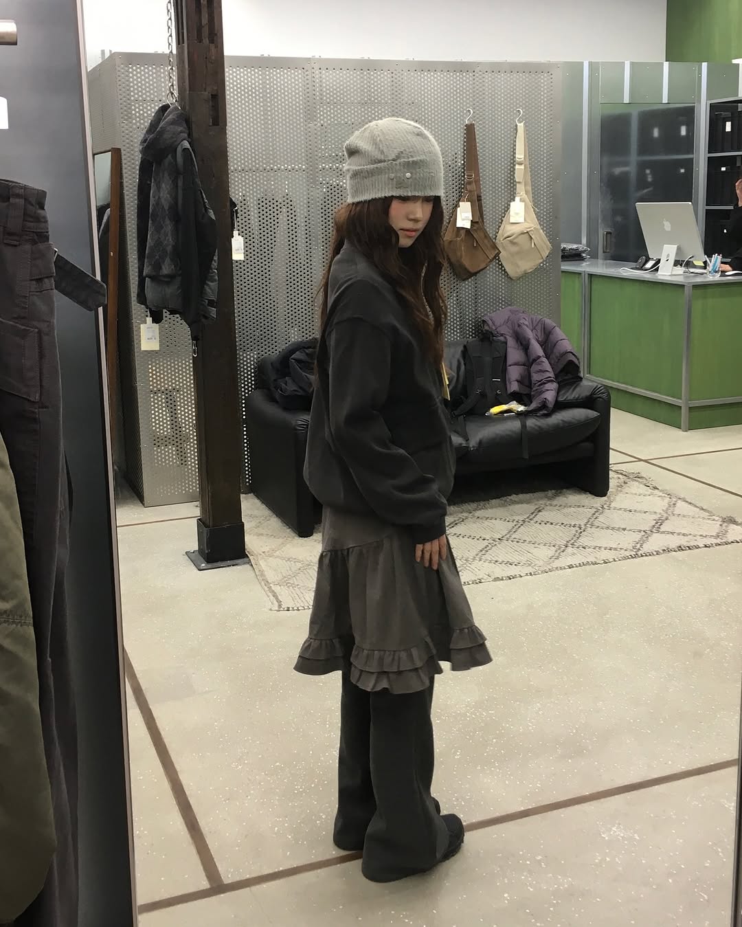 '허그유어스킨'의 옷들은 단순히 트렌디한 디자인을 넘어, 입는 사람의 '자신감'과 '주체성'을 표현하도록 돕는 것 같아요. 제가 얼마 전 소개해드렸던 '오호스 EpauleBesey Jacket Grey'와 '아트오브필드 FLAP POCKET MIDI SKIRT PURPLE GRAY', 그리고 '아식스 Gel-1130 Piedmont Grey' 슈즈에 '지초이 SS23 DUAL ZIP HAND BAG GREY' 백까지 매치했을 때, '허그유어스킨'만의 'Cut-out Leg warmer Gray'를 살짝 더해주니 코디에 센스가 한 스푼 더해지는 느낌이었어요. 🩶 이런 디테일 하나하나가 모여서 저만의 스타일을 완성하는 데 큰 역할을 하더라고요!