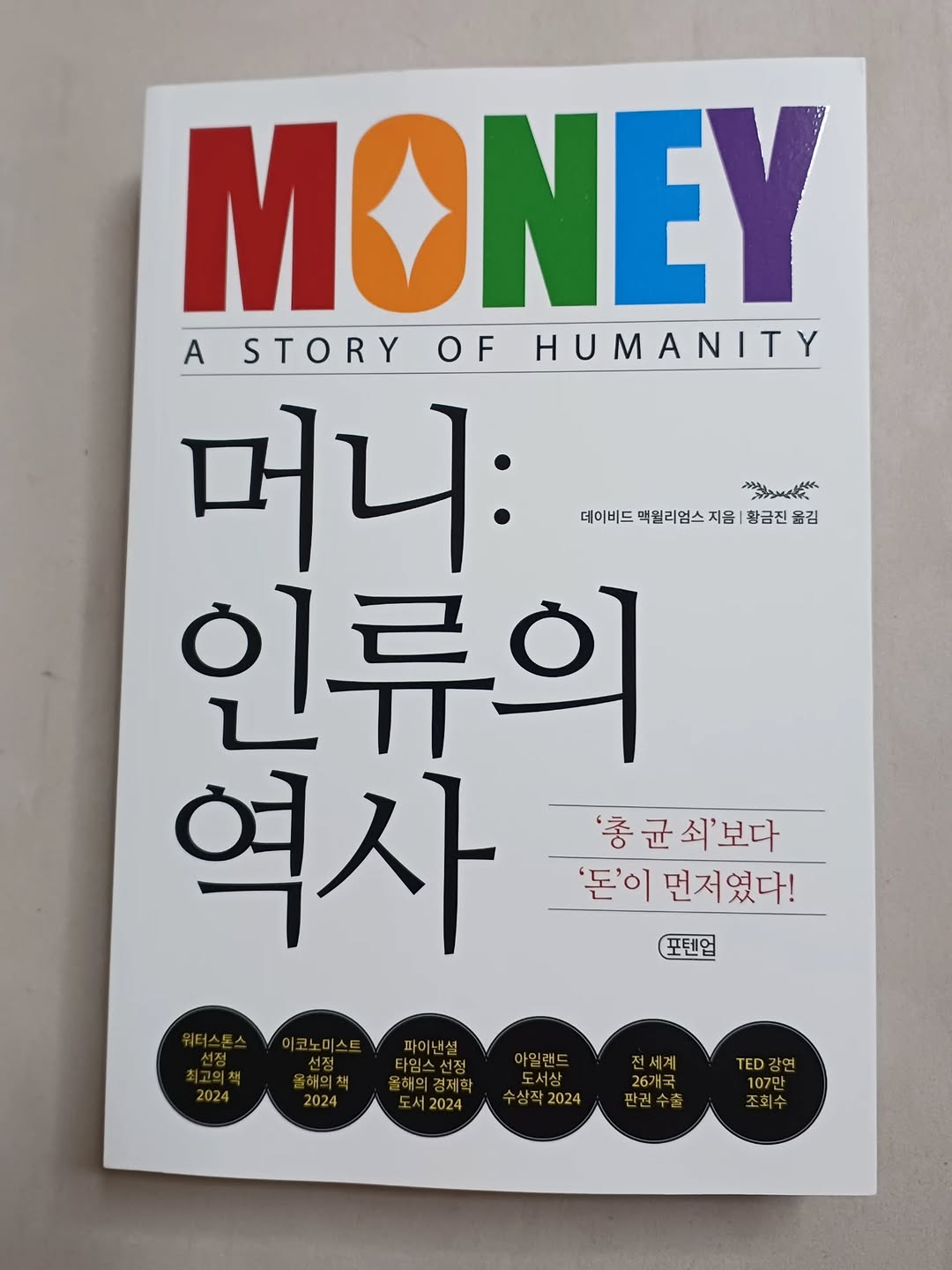 안녕! 책덕후 언니 오빠 동생들👋 오늘은 읽기 전부터 호기심 폭발했던 책, 데이비드 맥윌리엄스의 『머니: 인류의 역사』를 들고 왔어! 출간 소식을 듣자마자 "총 균 쇠보다 돈이 먼저였다!"는 문구에 심장이 두근거렸지 뭐야? 대체 왜 ‘총 균 쇠’보다 ‘돈’이 먼저였다고 하는 걸까? 👀 이 책을 읽고 나면 내 지갑 속 돈이, 그리고 우리가 사는 세상이 다르게 보일지도 몰라!